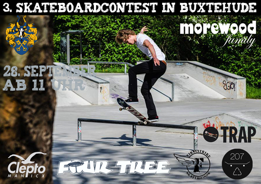 Wir wollen euch alle herzlich zum 3. Skateboardcontest einladen. Der Contest findet am 28. September statt. Wie immer fangen wir ab 11 Uhr an. Auch dieses Jahr verantstalten wir den Contest in zusammenarbeit mit der Stadtjugendpflege Buxtehude.